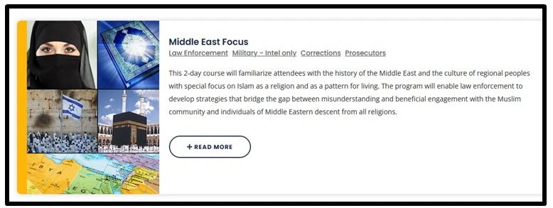 This course will make law enforcement attendees more successful when dealing with persons from the Middle East.